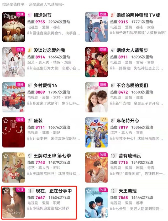 然而《分手中》上线两天,热度却还不及国产甜宠剧,在整个平台榜单中连前10都排不进去。